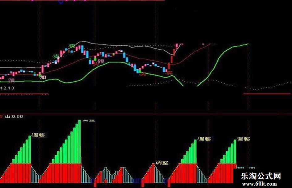 DRAWTEXT(REF(火,3)>0 AND REF(火,2)>0 AND REF(火,1)>0 AND 火=0 AND REF(火,1)>山,REF(火,1),'调整'),COLORYELLOW , ;