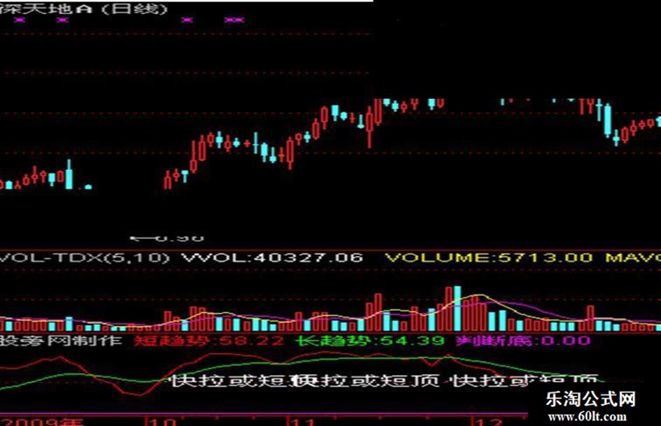 DRAWTEXT(CROSS(短趋势,长趋势)AND 长趋势>25 AND 长趋势>REF(长趋势,1),50,'快拉或短顶');