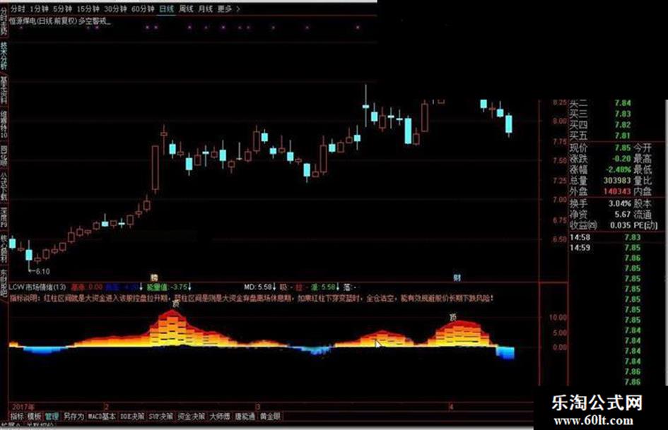 红柱区间就是大资金进入该股控盘拉升期,蓝柱区间是则是大资金弃盘离场休息期,如果红柱下穿变蓝时,全仓沽空,能有效规避股价长期下跌风险!