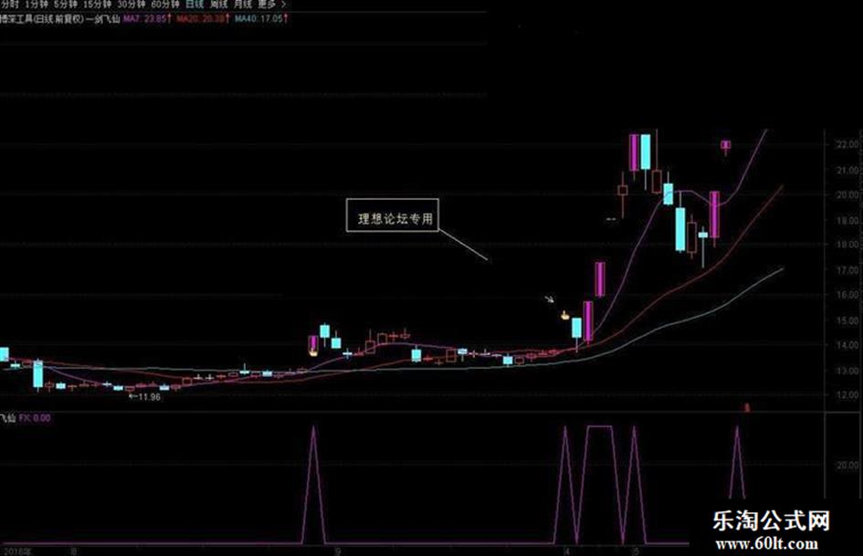 股票先走出七绝剑气,回调之后再走出一剑飞仙的选股公式,低吸介入勿追高,加密勿介。形成一剑飞仙当天在主图上用向上手指标出。