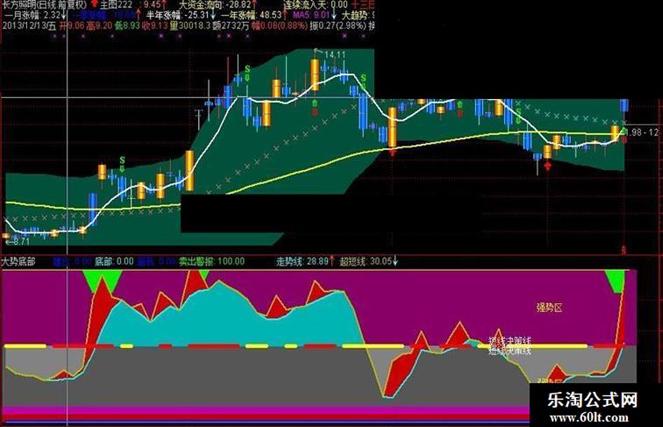 DRAWBAND(走势,RGB(0,180,180),50,RGB(130,130,130));