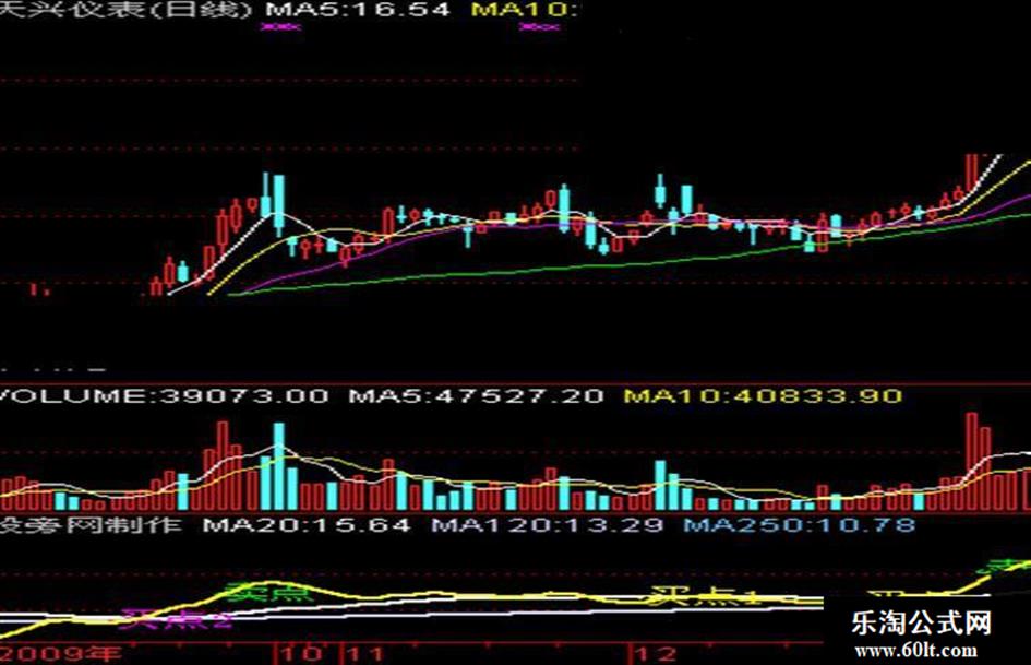 DRAWTEXT(ma120>=ref(ma120,1) and cross(c,ma20) and cross(c,ma120) and v>ref(v,1),l-0.13,'买点2'),colorff00ff ;