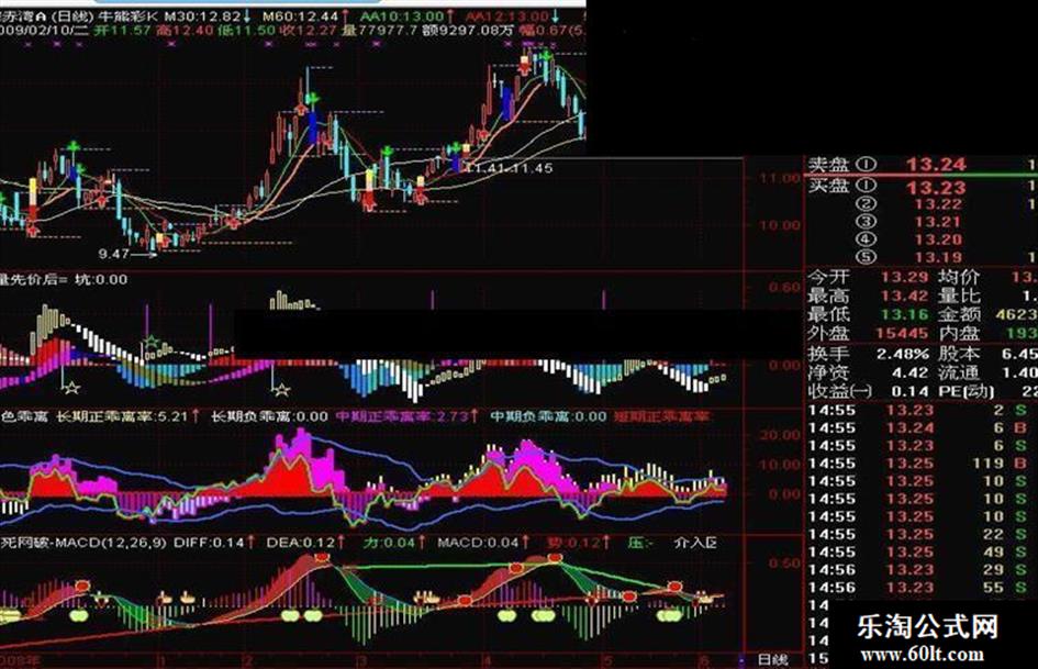 ①量:=EMA(换手,N1)-EMA(换手,N2);