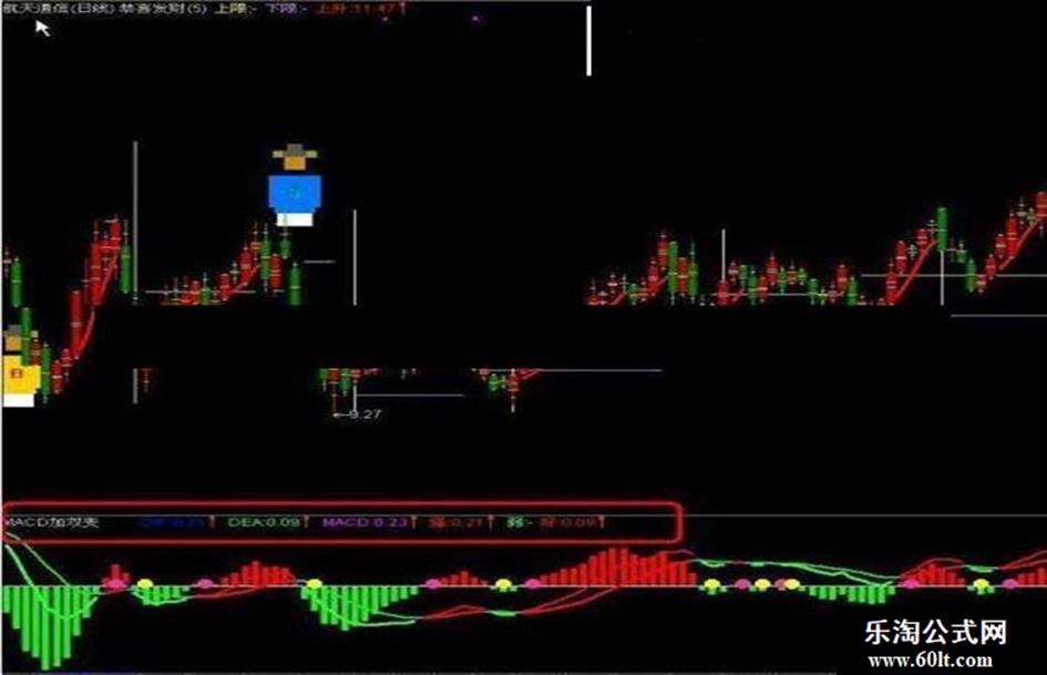 强:IF(DIF1>=DEA1,DIF1,DRAWNULL),COLORRED,LINETHICK2;