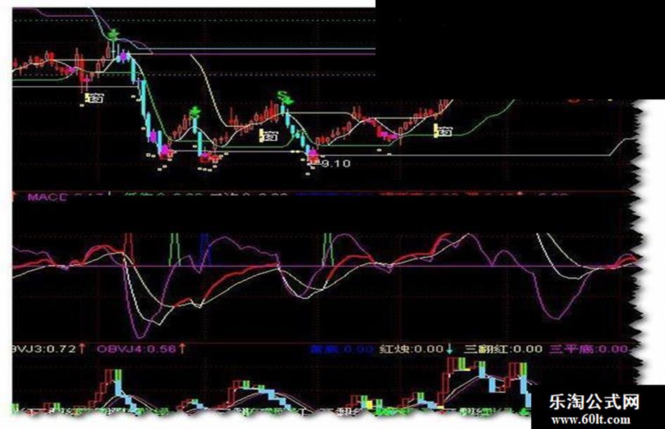 底背离:REF(CLOSE,A1+1)>CLOSE AND DIFF>REF(DIFF,A1+1) AND CROSS(DIFF,DEA);