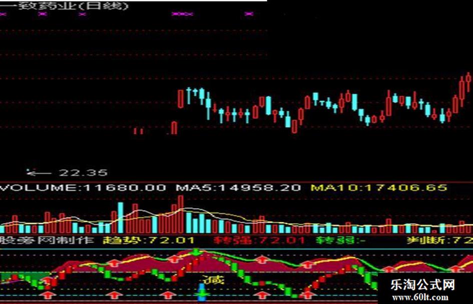 转弱:IF(趋势<50,趋势,DRAWNULL),COLORGREEN;