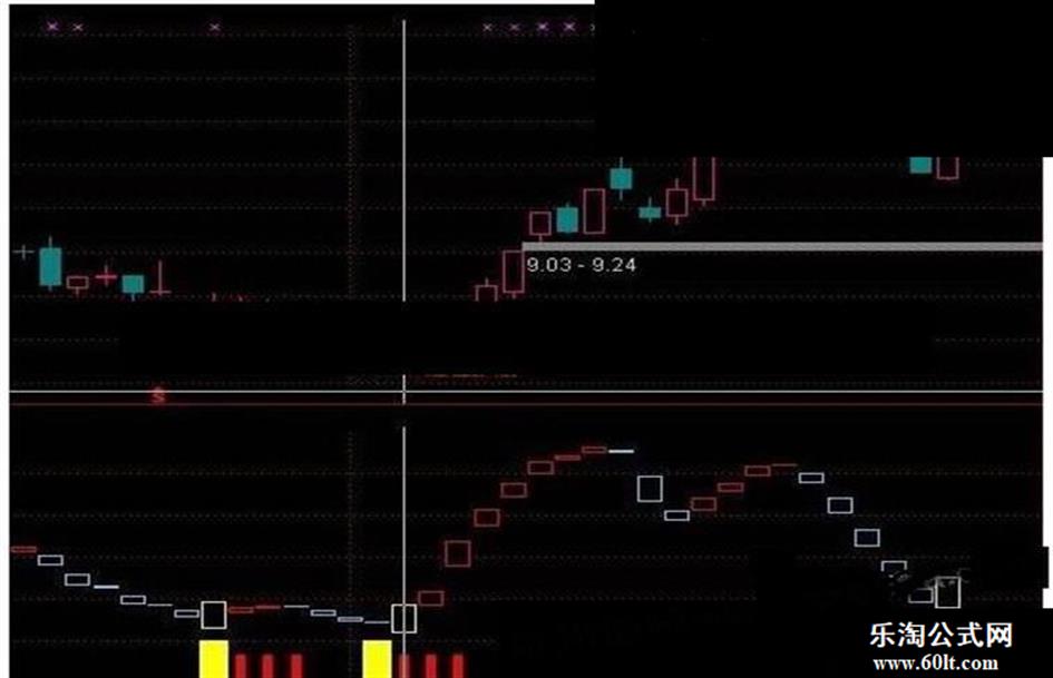 VAR1:=REF(CLOSE,1);VAR2:=SMA(MAX(CLOSE-VAR1,0),7,1)/SMA(ABS(CLOSE-VAR1),7,1)*100;DRAWTEXT(FILTER(REF(VAR2,1)<20 AND VAR2>REF(VAR2,1),5),L*0.99,'↖特准抄底'),COLORGREEN;BIAS1:=(C-MA(C,6))/MA(C,6)*100;BIAS2:=(C-MA(C,12))/MA(C,12)*100;BIAS3:=(C-MA(C,24))/MA(C,24)*100;BIAS:=(BIAS1+2*BIAS2+3*BIAS3)/6;乖离:=MA(BIAS,3);DRAWTEXT(CROSS(BIAS,乖离) AND 乖离<-9.5,L*0.96,'↖红柱抄底'),COLORRED;红柱:(CROSS(BIAS,乖离) AND 乖离<-9.5),COLORRED,NODRAW;特准抄底:(FILTER(REF(VAR2,1)<20 AND VAR2>REF(VAR2,1),5)),COLORGREEN,NODRAW;合成买进买:=IF("KDJ.J"<0,10,0);VAR1:=(2*CLOSE+HIGH+LOW)/4;VAR2:=LLV(LOW,5);VAR3:=HHV(HIGH,5);VAR4:=EMA((VAR1-VAR2)/(VAR3-VAR2)*100,5);MA1:=MA(VAR4,2);AA:STICKLINE(VAR4>MA1,VAR4,MA1,3,1),COLORRED;BBB:STICKLINE(VAR4>MA1 AND REF(VAR4,1)<30,VAR4,MA1,3,1),COLORRED;STICKLINE(VAR4<=MA1,VAR4,MA1,3,1),COLORFFCC66;XXX:=STICKLINE(BBB,VAR4+5,MA1-4,3,1),COLORYELLOW;STICKLINE(FILTER(XXX ,5) ,VAR4+5,MA1-4,3,1),COLORYELLOW;Y1:=LLV(L,17);Y2:=SMA(ABS(L-REF(L,1)),17,1);Y3:=SMA(MAX(L-REF(L,1),0),17,2);Q:=-(EMA(IF(L<=Y1,Y2/Y3,-3),1));STICKLINE(CROSS(Q,0),15,0,4,0), , COLORYELLOW;强拉升: IF(CROSS(Q,0),1,0),COLORYELLOW; Q1:= (CLOSE-MA(CLOSE,40))/MA(CLOSE,40)*100, , COLOR00FF00,LINETHICK2;STICKLINE(CROSS(Q1,-24),20,0,4,0), , COLORMAGENTA;加强拉升: IF(CROSS(Q1,-24),1,0),COLORMAGENTA;VAR5:=EXPMA(EXPMA(EXPMA((2*CLOSE+HIGH+LOW)/4,4),4),4);天:=( MA((VAR5-REF(VAR5,1))/REF(VAR5,1)*100,2));地:=( MA((VAR5-REF(VAR5,1))/REF(VAR5,1)*100,1));STICKLINE(地>天 AND 地<0,10,0,1,0),COLORRED;开始拉升:STICKLINE(地>天 AND 地<0,10,0,1,0)=1,COLORRED;