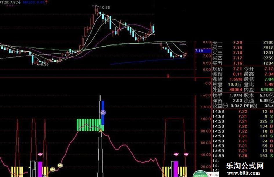 买入信号:=STICKLINE(CROSS(股价趋势,底部警戒),0,30,3,0),COLORWHITE;