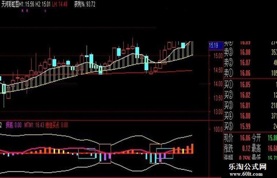 黑马白金-主图用法:当白线上穿黄线时为买点,出现黄柱子逐渐放大看涨股价站上红线为强势;反之,为卖点,出现蓝柱子并逐渐放大为弱势。