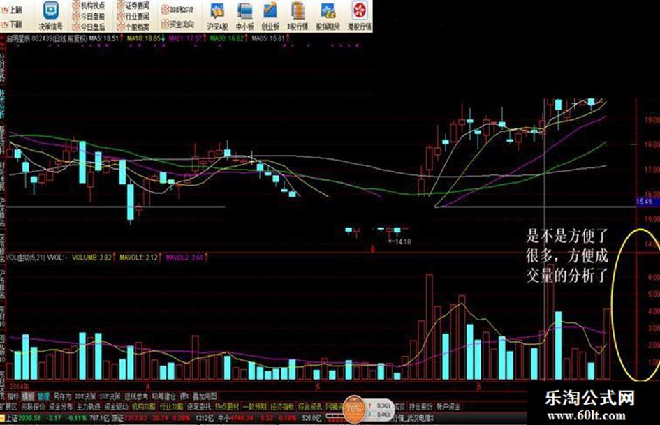 直接看图。是不是很清楚成交量的变动了,更好分析了