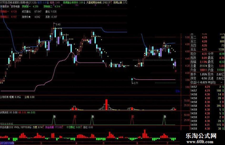 昨晚根据西电老师的回调决策K线中紫色K线和公鸡吸筹做了一个选股公式,就叫紫色公鸡吧。今天盘后选出1只股票600234,做一下测试,看看后市效果如何。