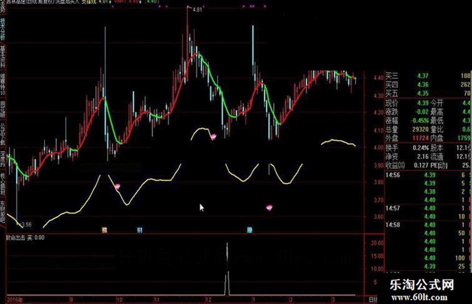 买条件:=(REF(SS,2)<REF(SS,1)AND SS>REF(SS,1))*SS,COLORYELLOW,LINETHICK2;