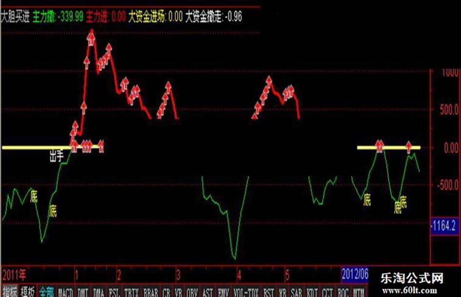 DRAWTEXT(REF(该出手时就出手,1)>REF(该出手时就出手,2) AND 该出手时就出手<REF(该出手时就出手,1),大资金撤走,'出手'),COLORWHITE;