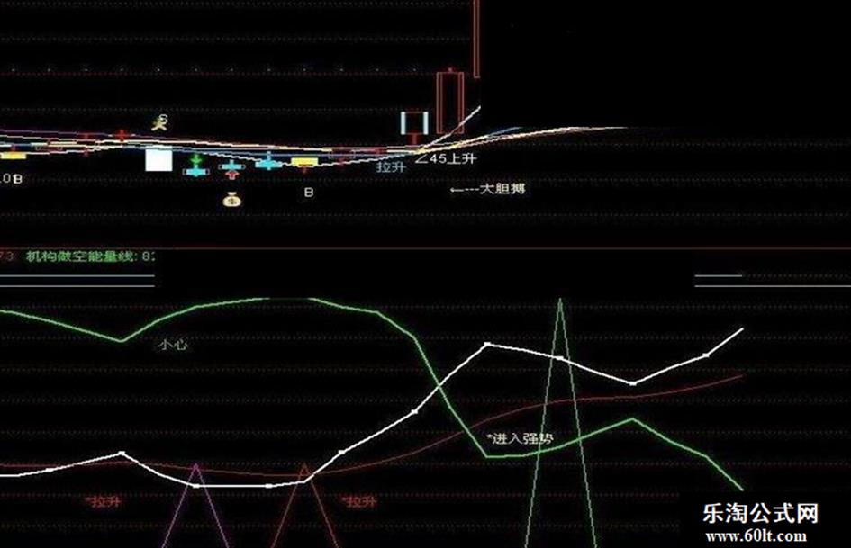DRAWTEXT(CROSS(跨越,机构做空能量线) ,大底+40,'*进入强势'),COLORYELLOW;