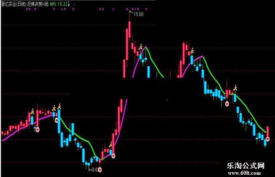 将抢反弹指标和变色的短线决策线有机结合,组成更加简明的操盘主图,K线分别以在短线决策线的上下所处的位置及抢反弹指标为依据做出买卖决策。简明、清晰!