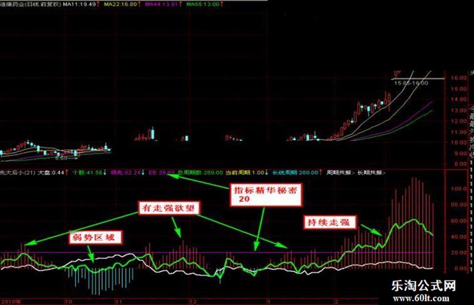 指标设计原理:统计21个交易日的大盘和个股涨幅,并做比较,自然知道谁强谁弱。