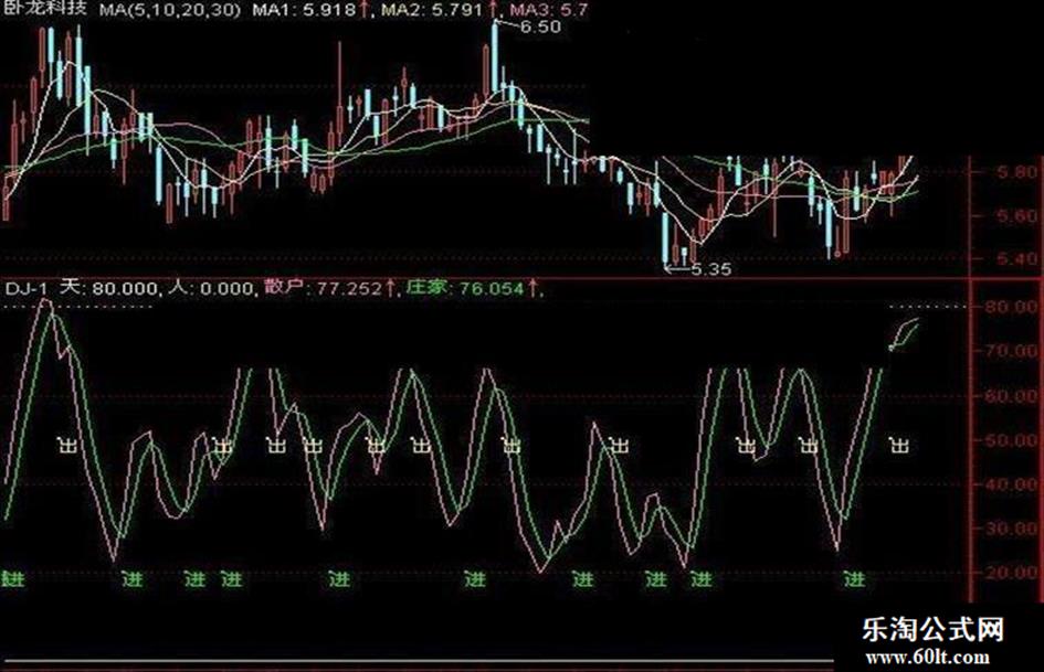 当满足条件散户上穿庄家AND散户<50AND29<散户时,在20位置书写文字,COLOR00FF00