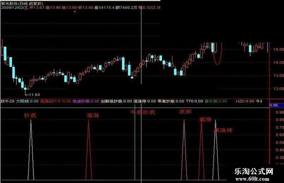 追涨创六十:IF(V1>60 AND V2,0.8,0),COLORRED;