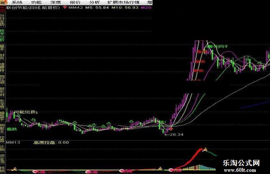 DRAWTEXT(VAR20>0.65 AND VAR15<9,M5,'看涨'), , COLORRED;