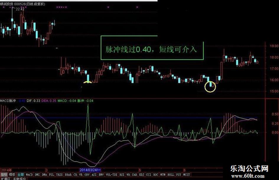 脉冲线过0.40后,大胆的可以结合MACD等指标收盘前阴线买,稳重的可以第二天逢低介入。用该 公式只要不贪心和注意止损,机会大于风险。该指标不含有任何未来函数,也没有调用任何未来数据,信号因此不会漂移。