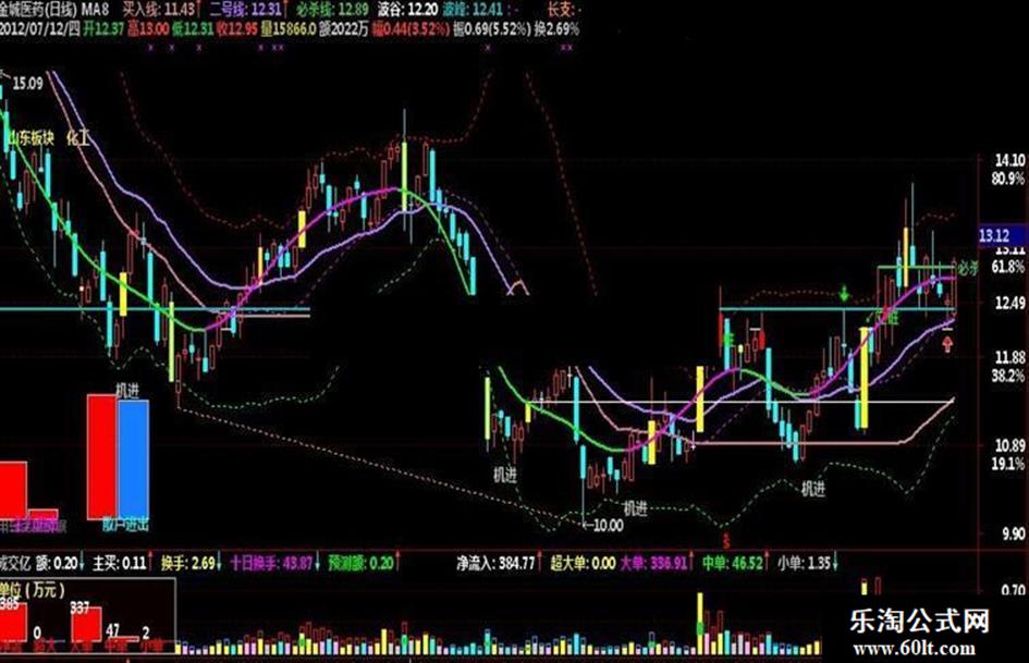 发出我的通达信主图,粉与绿线是中期趋势线(粉进绿出).注意:该公式用到未来数据如有不喜欢的不要用