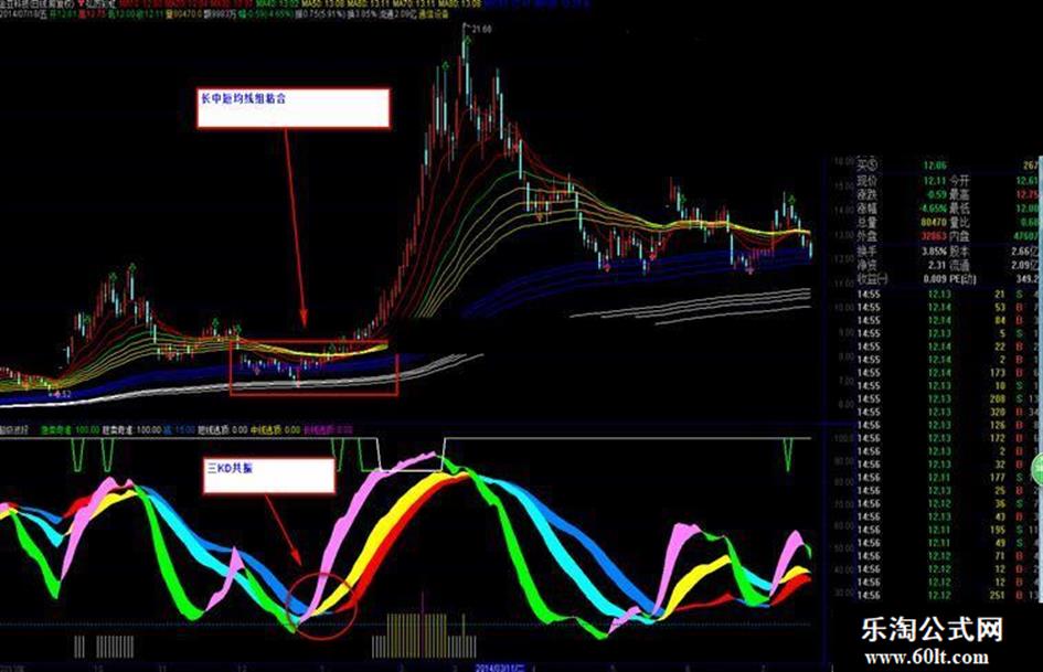 本指标由21KD,35KD,55KD组成,体现长中短趋势!利用三KD共振买入!如果再,结合均线粘合买入更隹!抓到大、中黑马不再是梦!上下卖出符号结合,提示长中短頂部