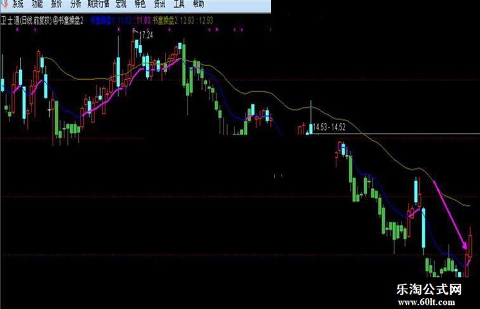 书童操盘1:(MA(CLOSE,3)+MA(CLOSE,6)+MA(CLOSE,12)+MA(CLOSE,24))/4,LINETHICK1,COLORBLUE;