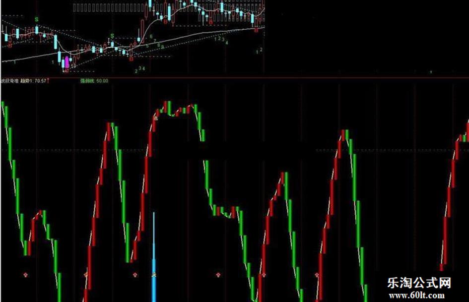 STICKLINE(REF(趋势1,1)< 趋势1, 趋势1,REF(趋势1,1),2.0,0),COLOR000077;