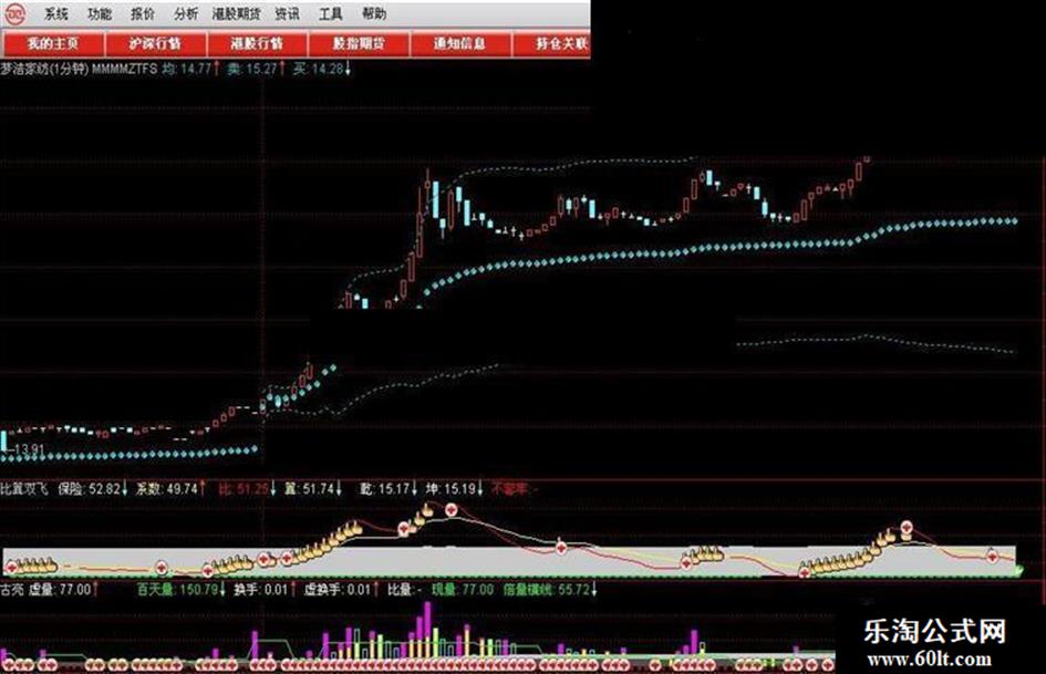 卖:均+(2*SQRT(MA((C-均)*(C-均),A1)))DOTLINE,COLORLIBLUE;
