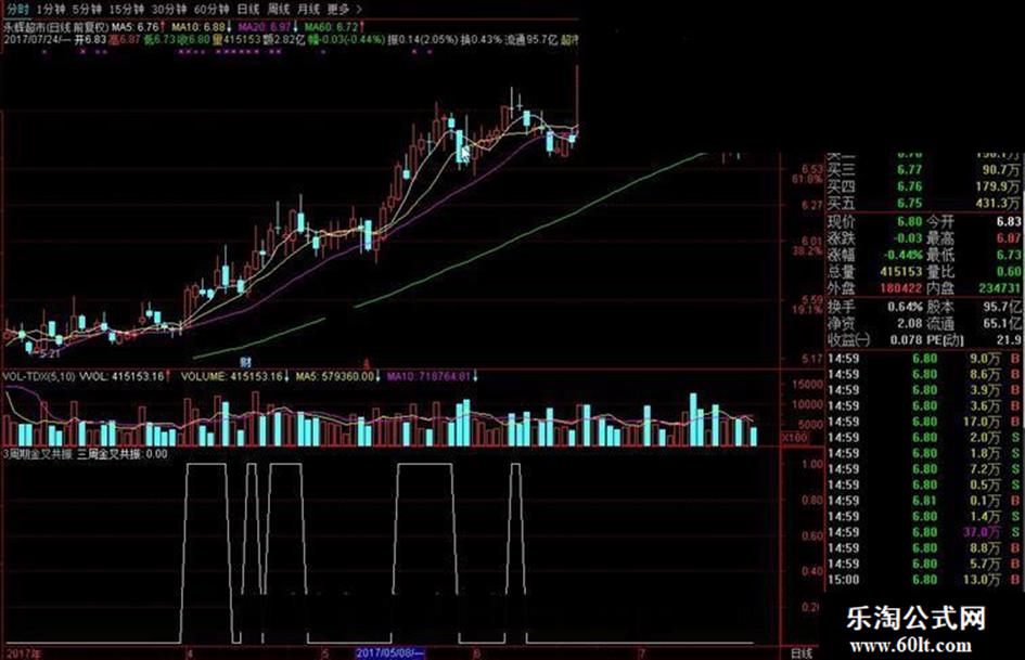 三周金叉共振:CROSS(A8,A9) OR A8>A9 AND (CROSS(A3,A4) OR A3>A4) AND (CROSS(A5,A6) OR A5>A6) AND (CROSS(周DIF,周DEA) OR 周DIF>周DEA) AND (CROSS(日DIF,日DEA) OR 日DIF>日DEA) AND (CROSS(月DIF,月DEA) OR 月DIF>月DEA) AND DYNAINFO(4)>0 AND DYNAINFO(37)<0.15;