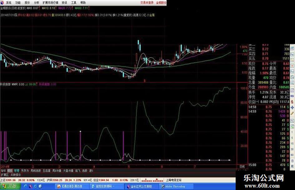 阶段底部:IF(MMR>JJ AND MMR>2 AND C=LLV(C,10) AND L=LLV(L,10),40,0),STICK,COLORAA00BB,LINETHICK3;