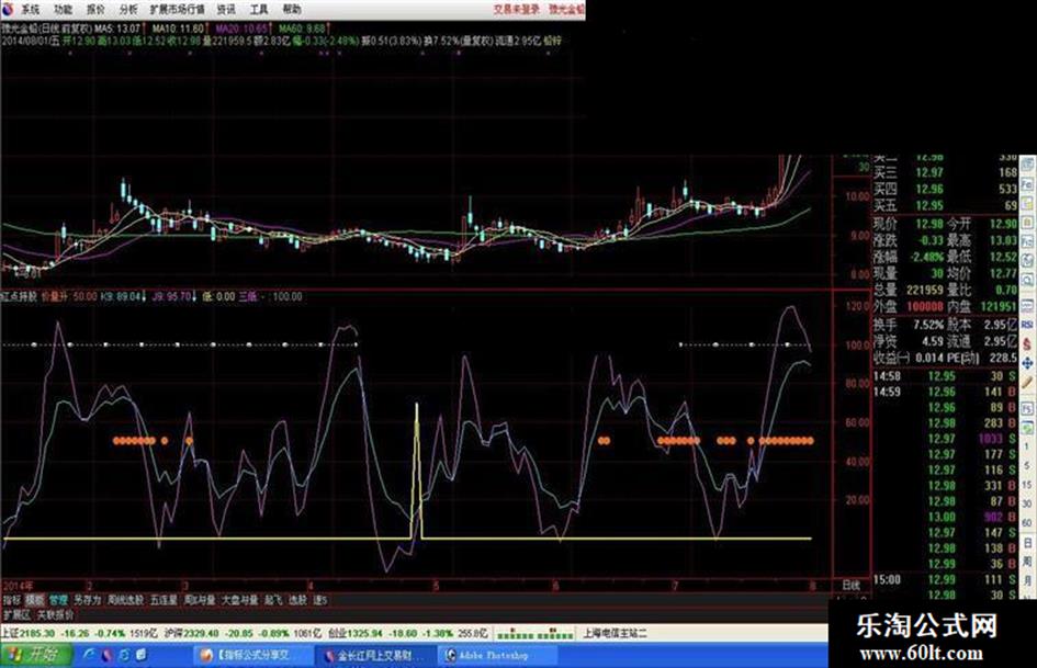 K9:SMA((C-LLV(L,9))/(HHV(H,9)-LLV(L,9)),3,1)*100,COLORFFFF00;