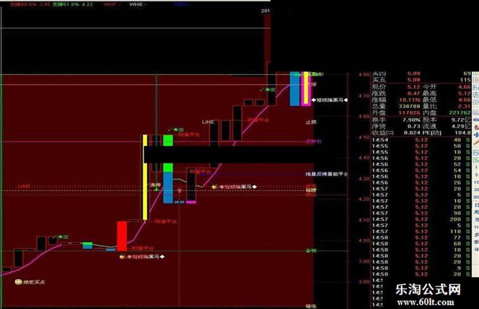 STICKLINE(买线>=卖线,HHV(H,60),LLV(L,60),5,0),COLOR000045;