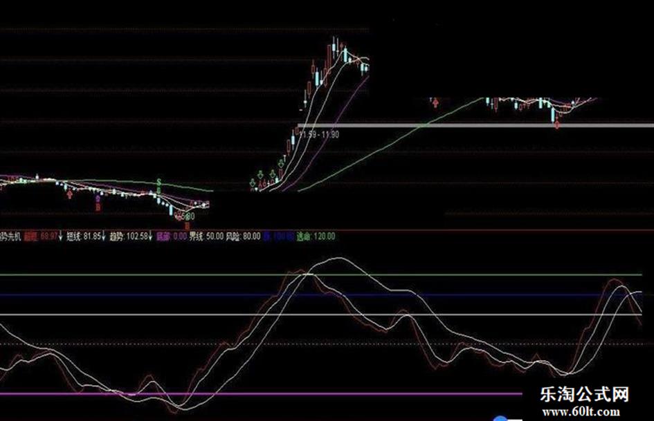 DRAWTEXT(CROSS(短线,超短) AND CROSS(趋势,超短) AND CROSS(趋势,短线),REF(超短,2)*1.2,'逃'),COLORBLUE;