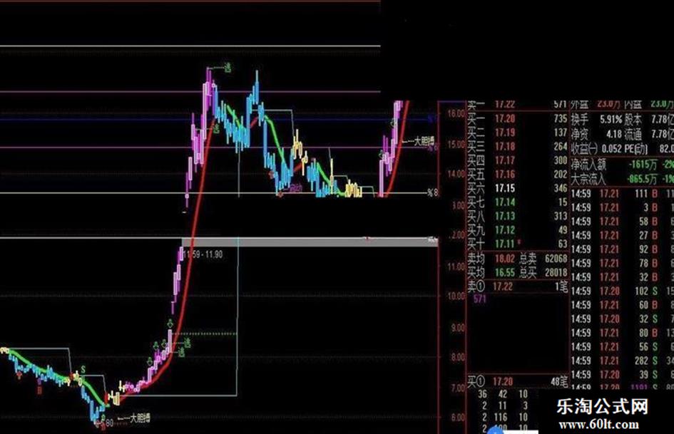 见底:IF(A7,LLV(L,21),DRAWNULL)COLORRED,CIRCLEDOT;