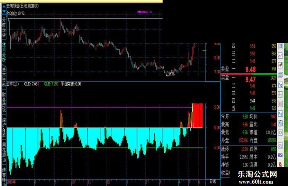 平台突破:IF(CROSS(GLD,5)AND (COUNT(ABS(GLD)<5,30)>24,3),GLD,0),COLORWHITE;