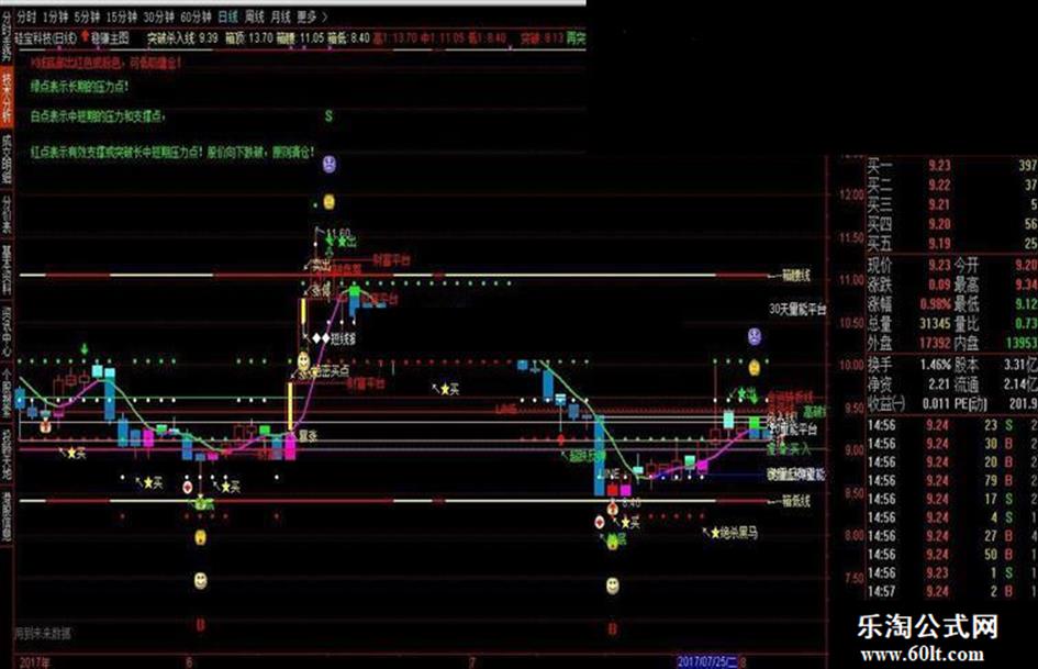 DRAWTEXT_FIX(CURRBARSCOUNT=1,0.02,0.16,0,'红点表示有效支撑或突破长中短期压力点!股价向下跌破,原则清仓!'),COLORGREEN;