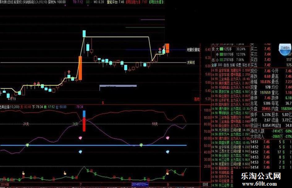 量能平台:IF(HV,C,REF(C,FT)),COLORYELLOW,LINETHICK2;