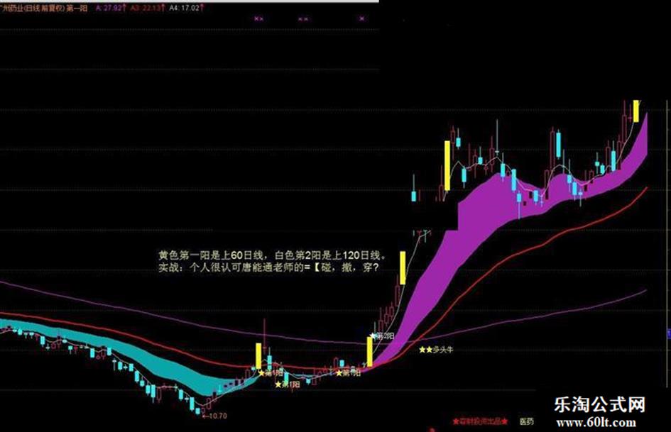 B2:=CROSS(A3,A4);DRAWTEXT(B2,A4-0.5,'★★多头牛'),COLORYELLOW;