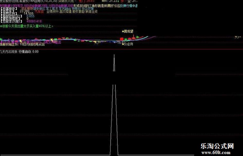 行情启动:IF(CROSS(股价指示,A),100,0) AND C/REF(C,1)>1.00 AND C<28>=0.50;
