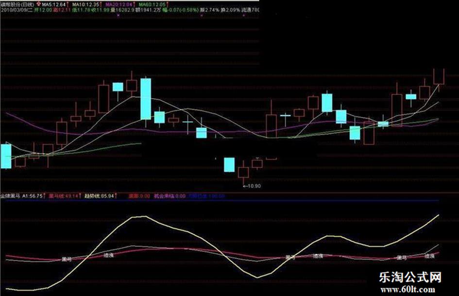 DRAWTEXT(CROSS(黑马线,A5)AND 趋势线<80,黑马线,'追涨');