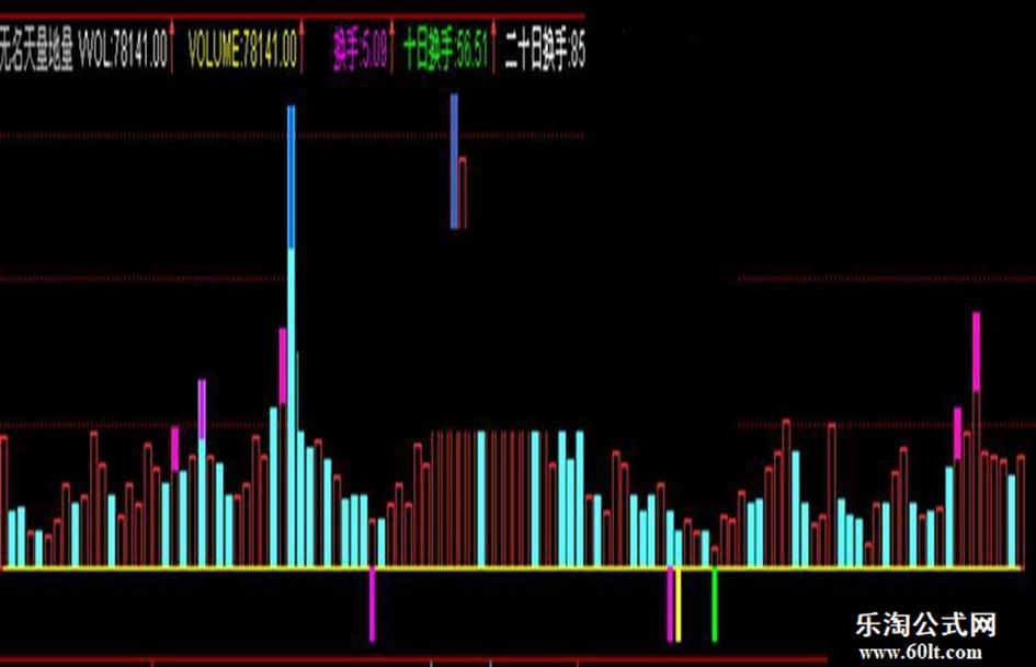 量柱下方,粉红色是三十日,黄色是六十日地量,绿色是一百天地量,蓝色是一年地量
