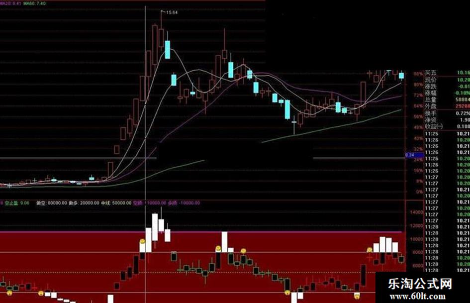短线收盘:=(C-短底)/(短顶-短底)*100000,LINETHICK2,COLORRED;