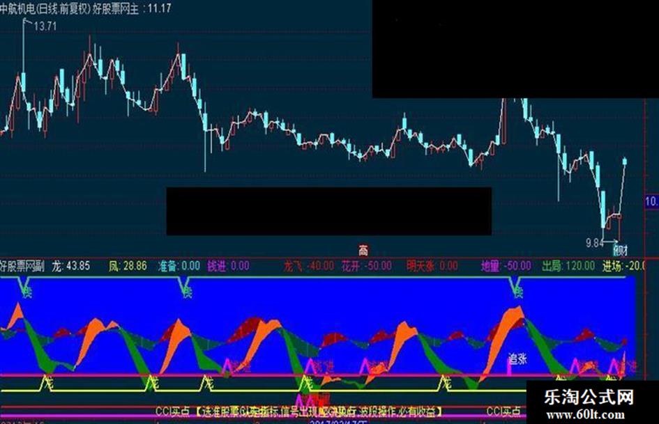 {DRAWTEXT(WZ=1,50,'【选准股票,认定指标,信号出现,坚决执行,波段操作,必有收益】'),COLORYELLOW;}