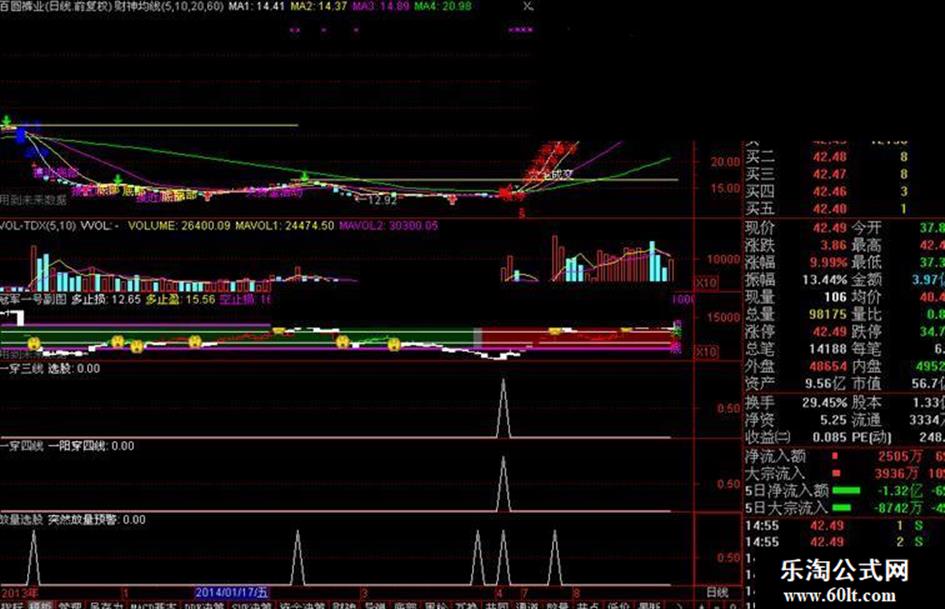 突然放量预警:VOL>REF(HHV(VOL,10),1)*1.5;