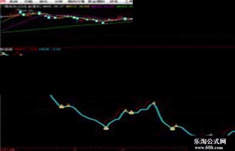 三线粘合:=IF(P3/C<6/100 AND MA1>REF(MA1,1),444,0)COLORFF00FF,LINETHICK3;