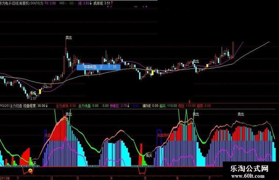 用法:灰色柱开始出现---表现为主力开始控盘,红色柱50以上--表现为主力高度控盘,兰柱青色芯---主力开始减仓即派发,这时不要贪,与主力采取同步操作获利了结。青色柱阶段--持币休息。特别是图中下方出现青色小方格时,更要耐心持币等待进场机会的到来!优化后的“主力控盘”指标,增加了--主力进场--主力洗盘--持股区--超买--超卖--低买--卖出等参考判断!请与MACD--VOL--DMI配合使用,效果更佳