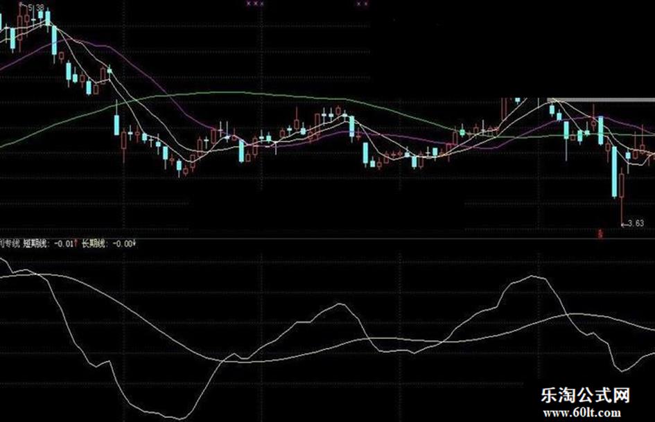 短期线:EMA(C/COST(3),10)-EMA(C/COST(3),15),COLORWHITE; 长期线:EMA(EMA(短期线,5),33),COLORYELLOW ;