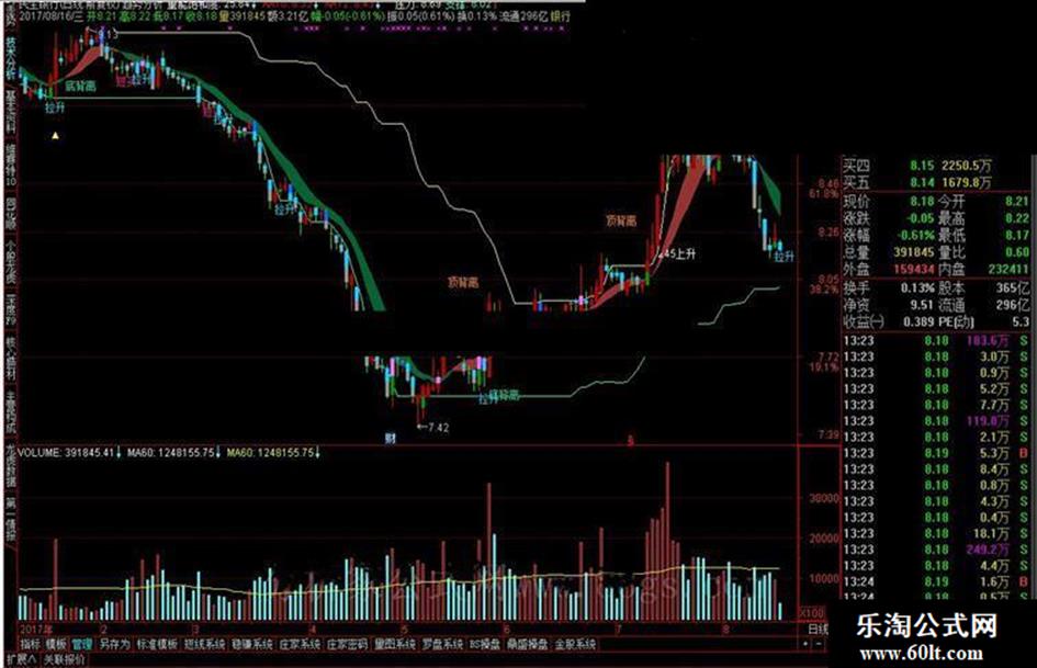 量能饱和度:IF((AMOUNT/C)/(HHV(AMOUNT,20)/HHV(C,20))*100>100,100,(AMOUNT/C)/(HHV(AMOUNT,20)/HHV(C,20))*100),NODRAW;