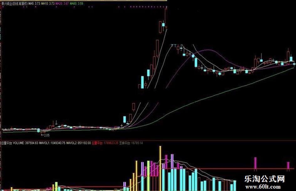 指标用法:低位出现的黄金巨量是买点,高位出现的黄金巨量一定要注意风险, 第一次出现黄金巨量后,回调后出现粉色成交量买进